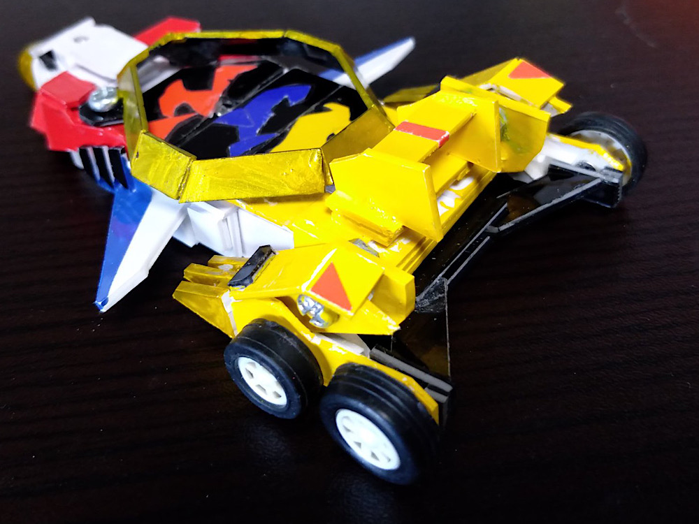 リアパーツの車輪が直進性を高めクチバシでの攻撃を当てやすくしつつ、フロントサイドの受け流し形状によりギミックの付いたリアパーツを守る
