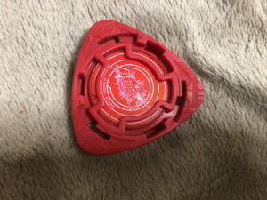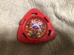 三角形のメンコの内側にキャラクターの描かれたメダルが入っており