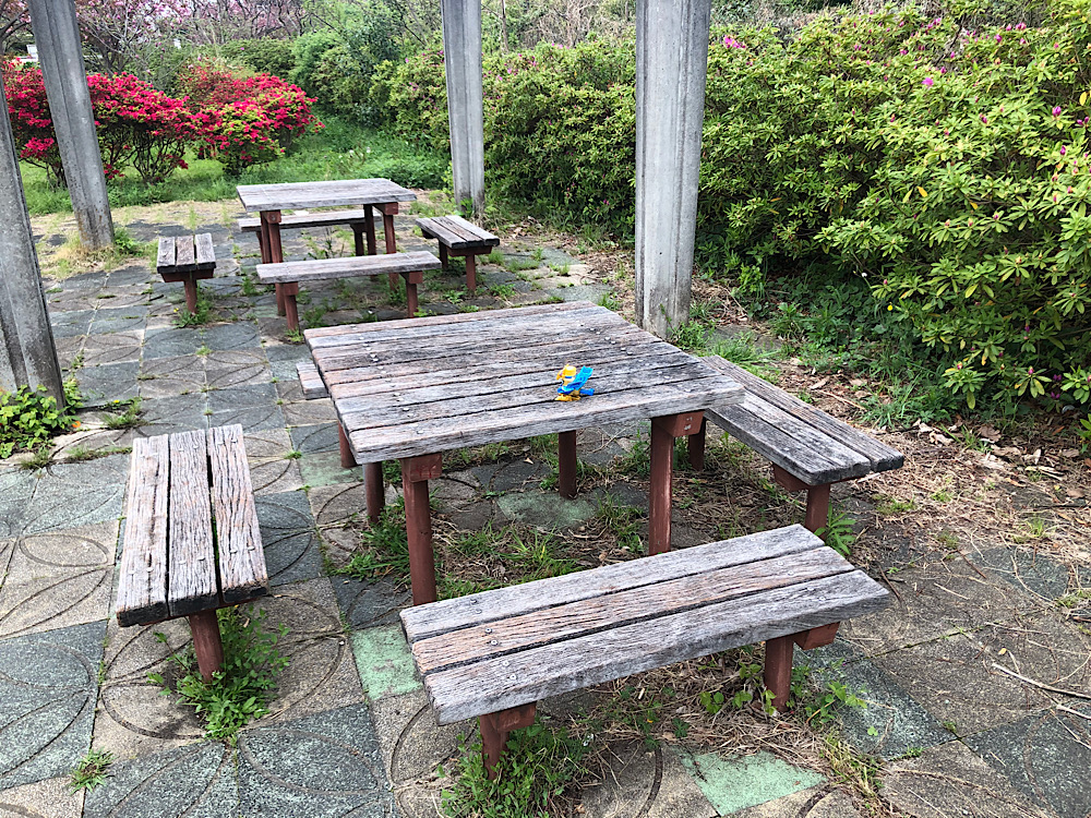 人気のない休憩所のテーブル使って遊びました