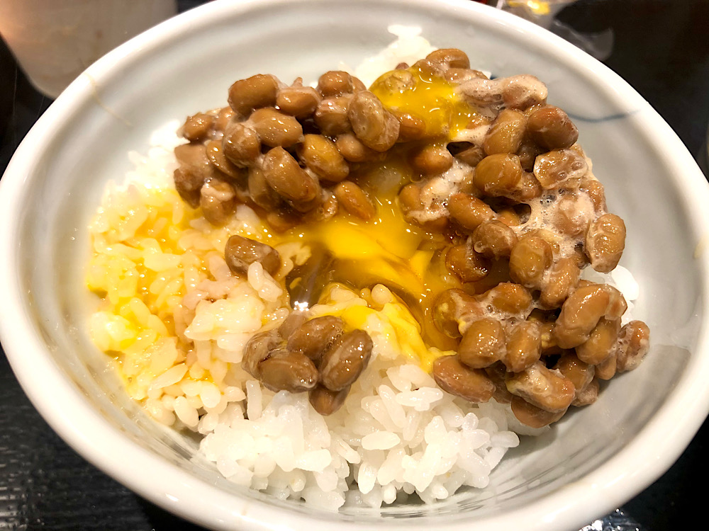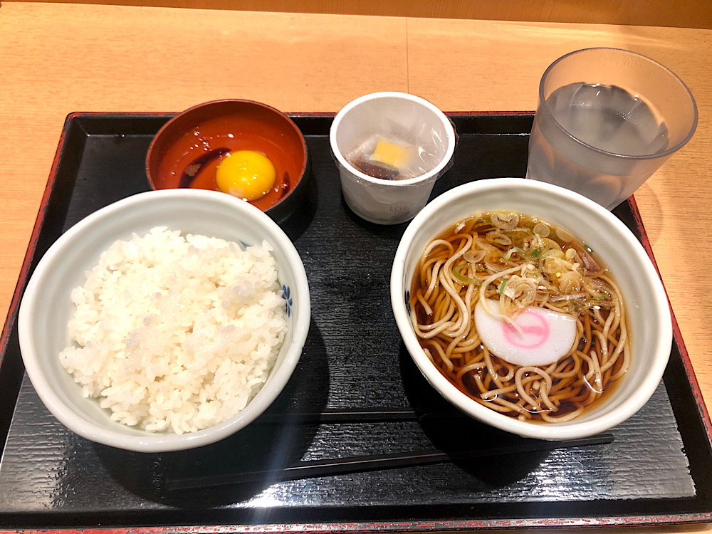 ミニそばに納豆と生卵ご飯と言う定番メニュー
