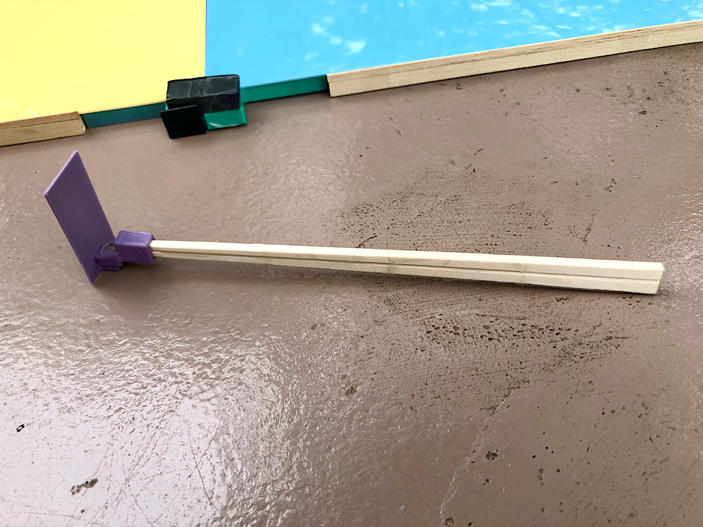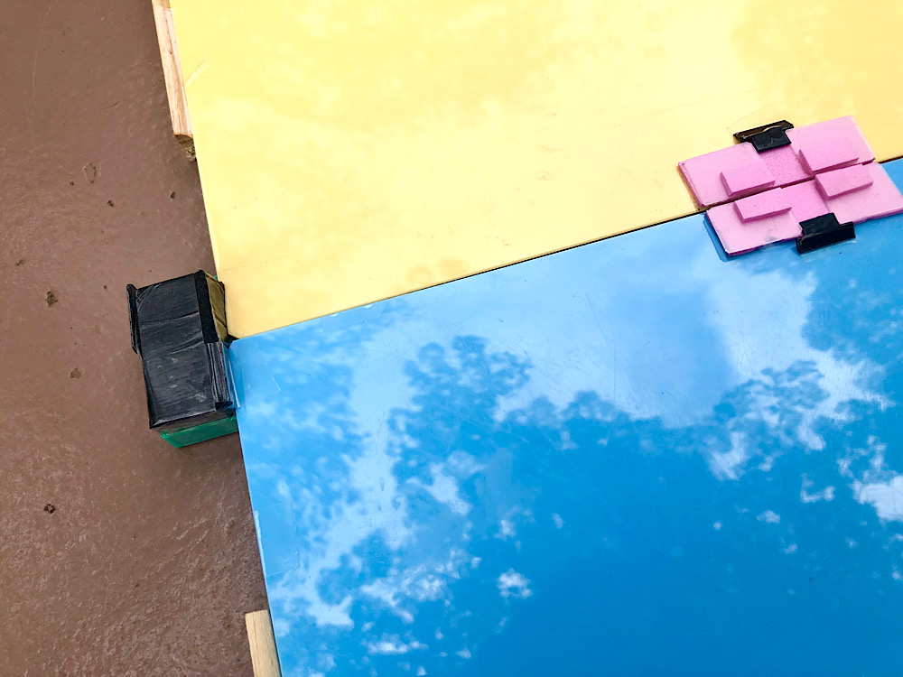 PP製のプラ板の裏側に木材を貼り付ける事で剛性を強化
