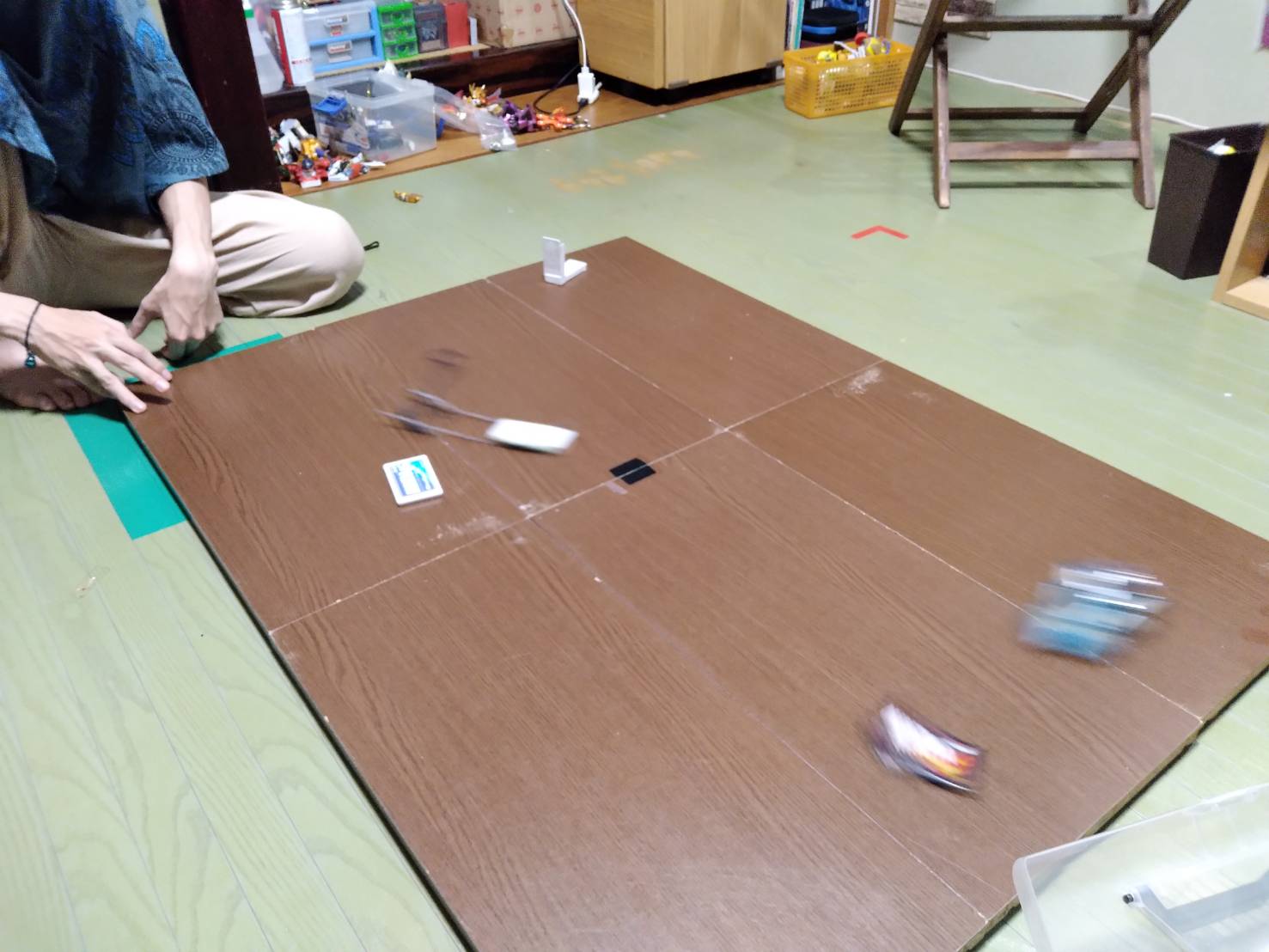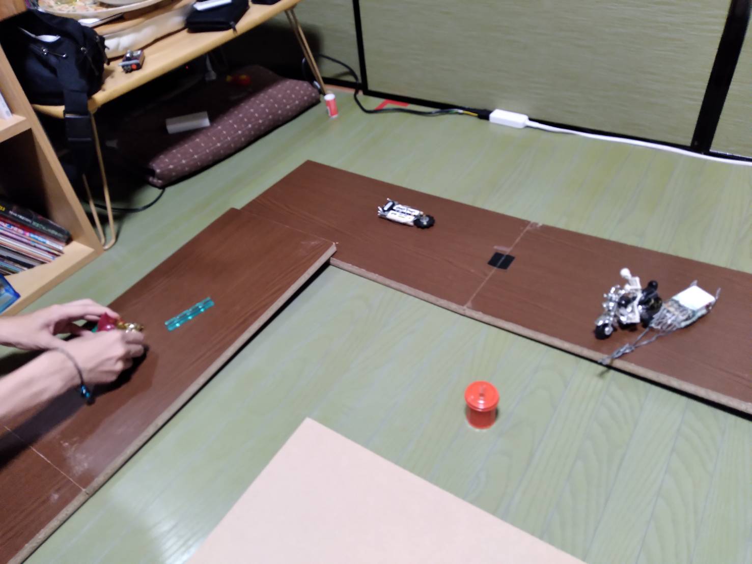 部屋をフルに使って三人でフリックスレース!