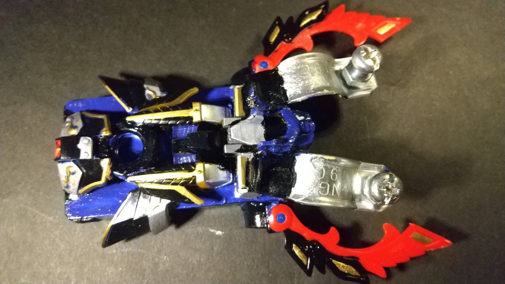 上とサイドに顔から飛び出るほどの大きな牙を装備!