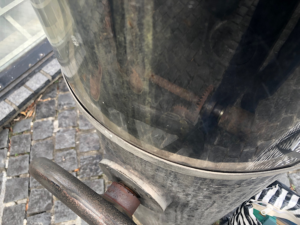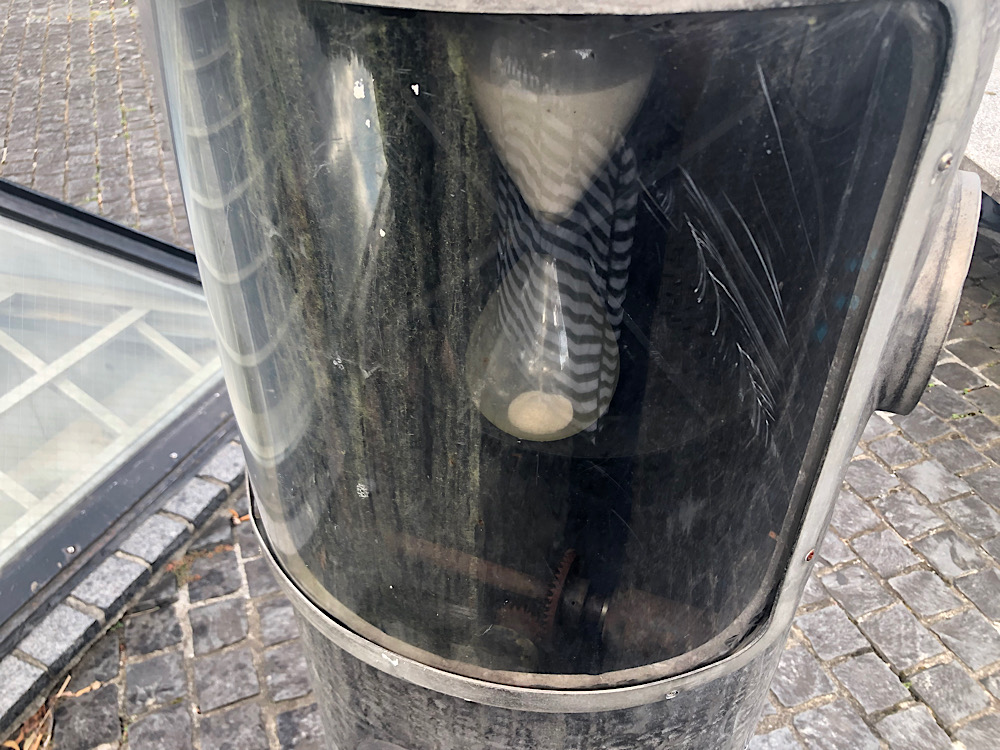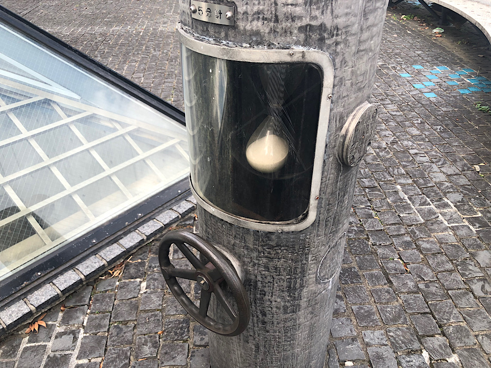 ハンドルを回すと、中の砂時計も回転