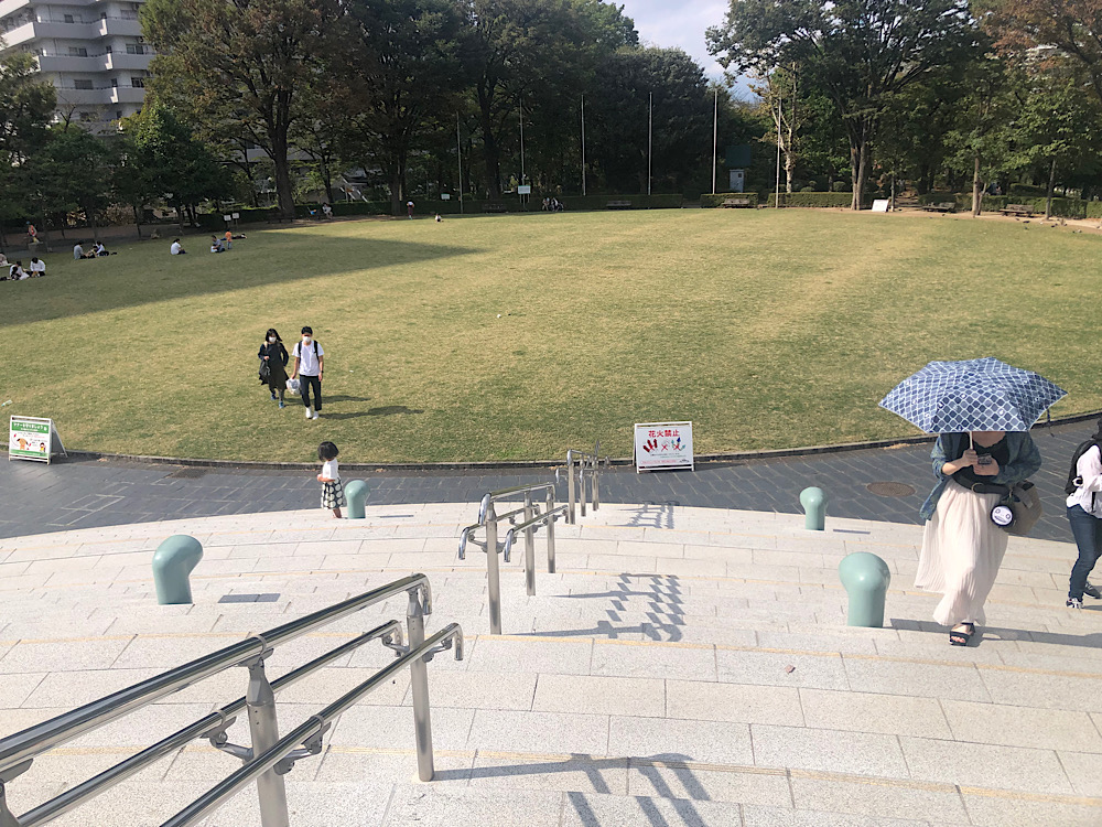 階段を降りるとそこは芝生エリア