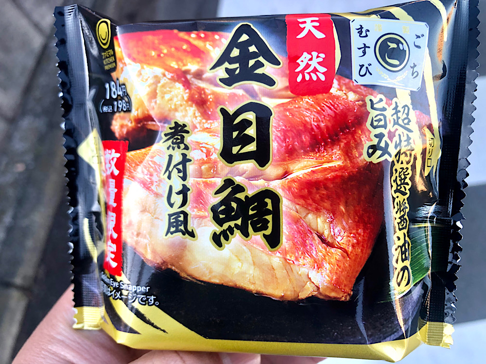 ごちむすび 天然金目鯛煮付け風 コメントを残す Tweet Pocket ファミリーマートのちょっと豪華なおにぎりです 中にはゴロっと鯛の切り身が入っています 口に入れた瞬間にタイの風味が広がり、小気味良い歯ごたえが大きさ以上の食べ応えです