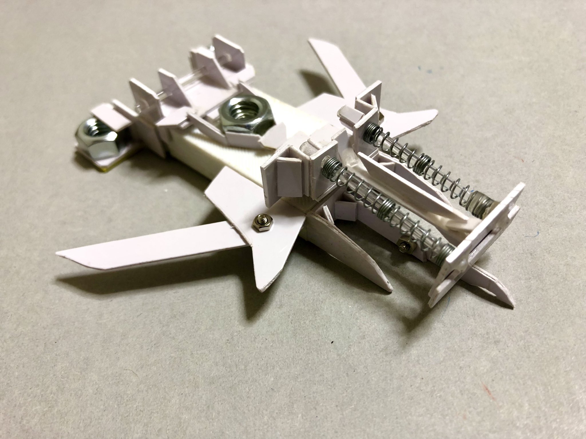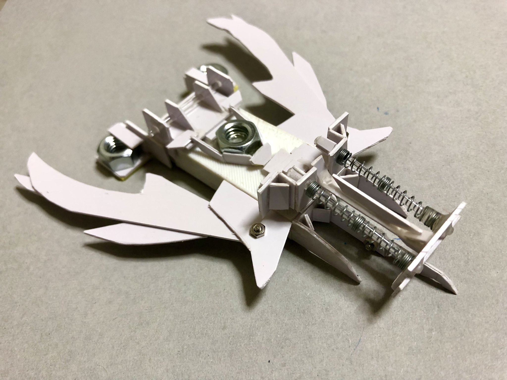 バネ蓄勢ギミック、刺突用の可動剣、変形翼、ワンウェイブレーキ、と実戦的なギミックを多数搭載している