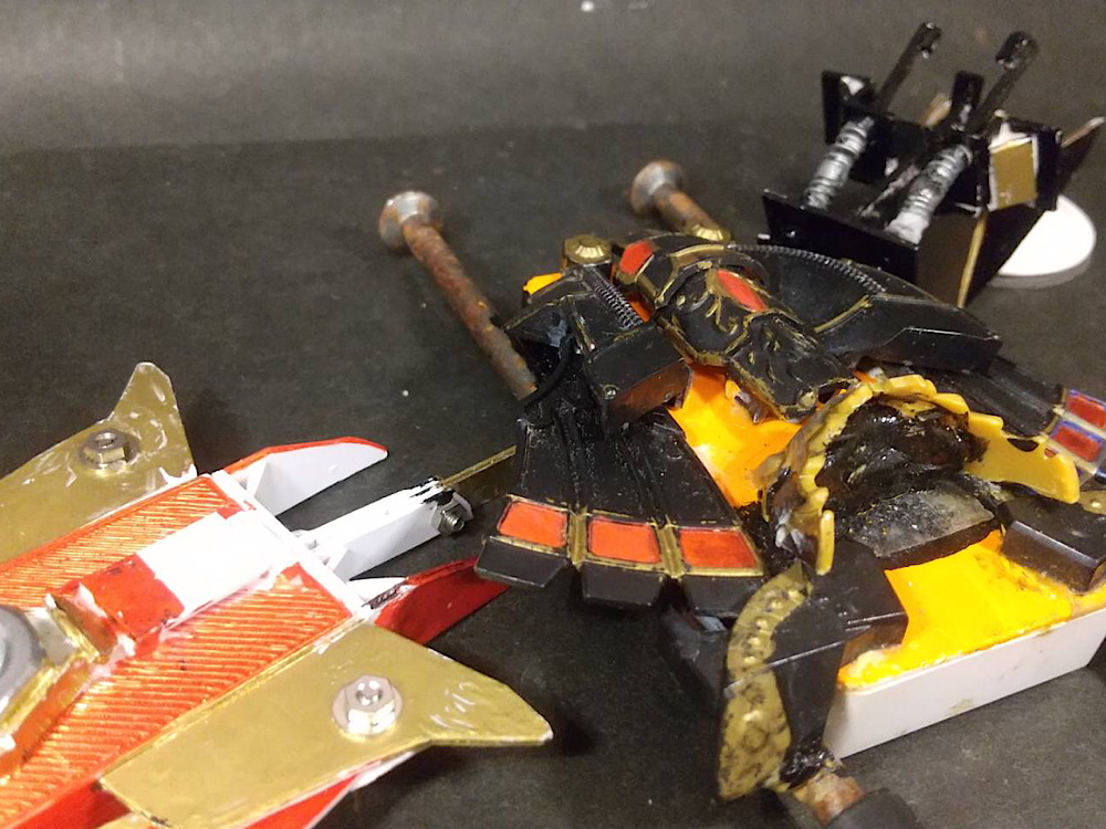 シュートした本体とバネ付きの分離パーツで敵機を挟み込む必殺技