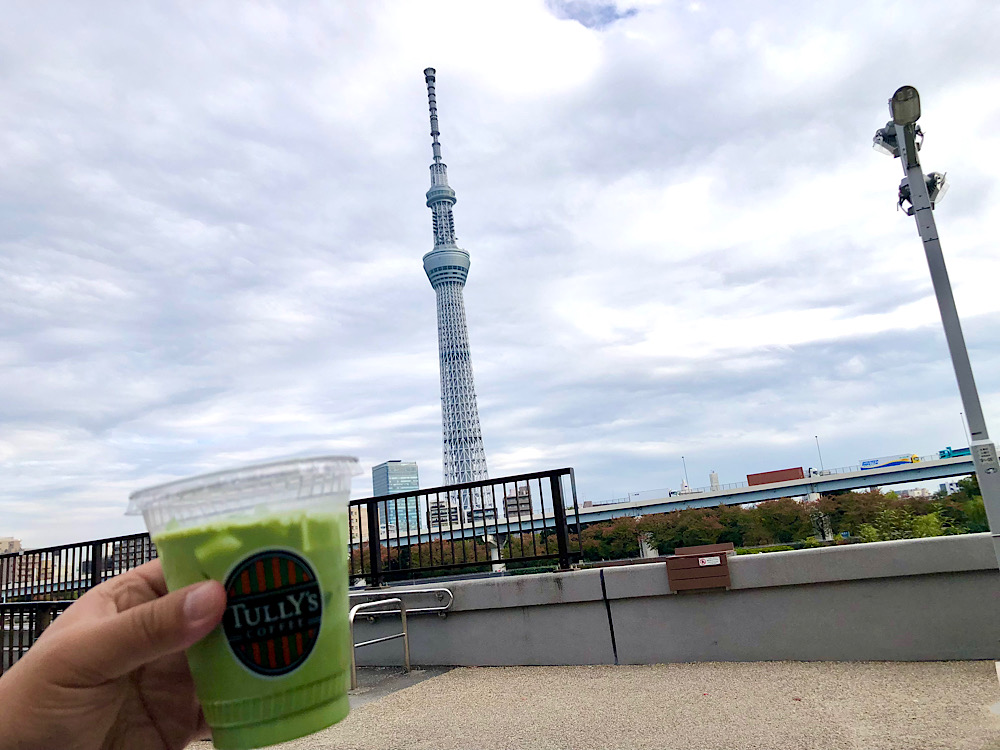 スカイツリーを眺めながらのコーヒーブレイクは良いもの