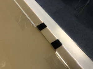 このプレートで露出した面ファスナーを隠しつつ、連結のためのジョイントにしてます