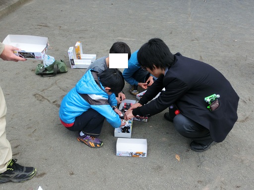 と言うわけで、いつものように半組マシンを渡して子供達に組み立ててもらう事に