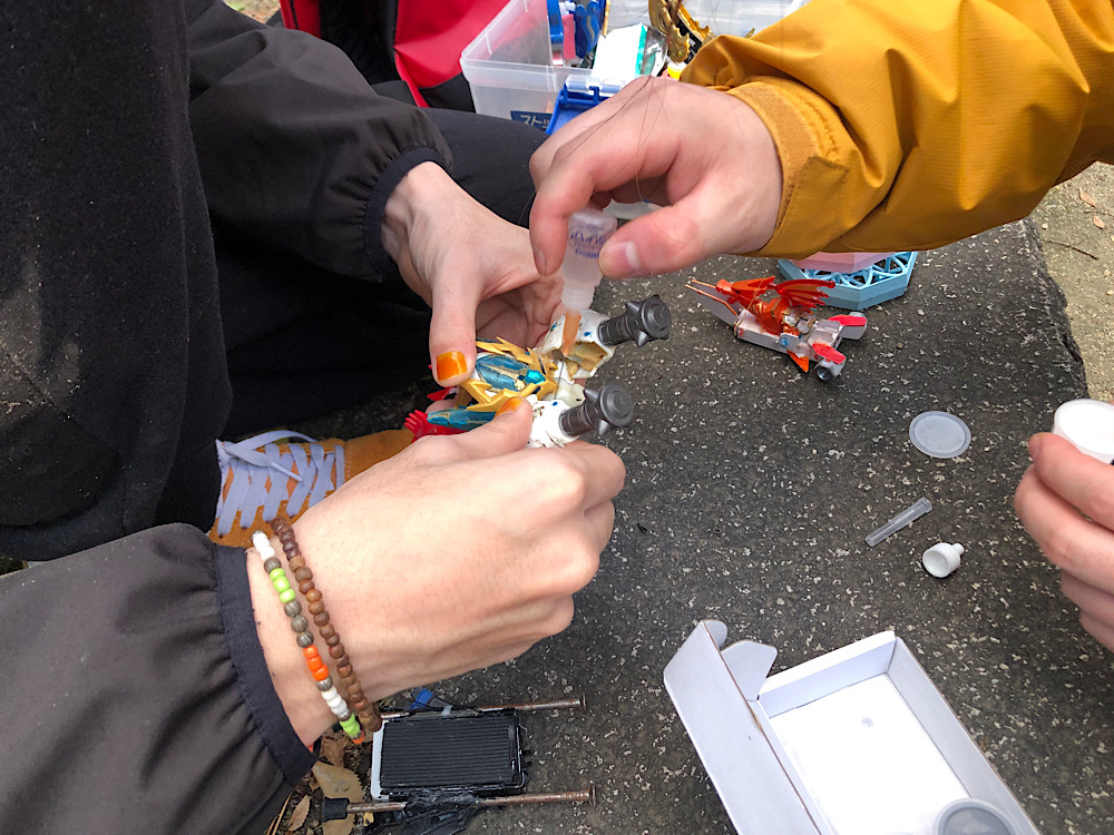 こんな風に外でカスタマパーツを広げてコースや競技に合わせて機体をチューニングしていくの