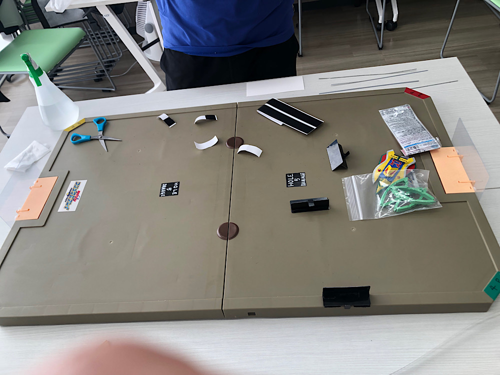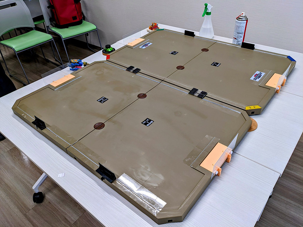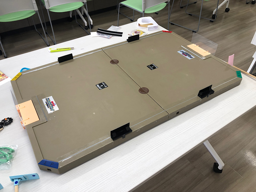 僕とたたみねさんで会場のセッティングと大会に使うためのフィールド製作