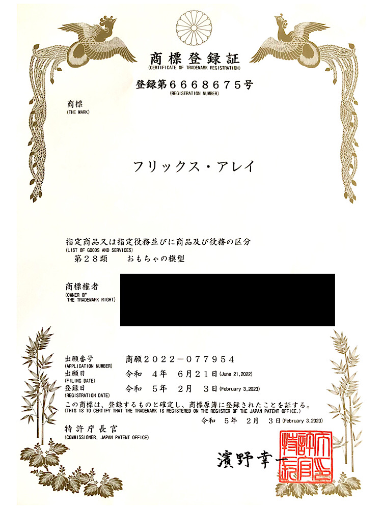 【フリックス・アレイ】の商標を取得しました(登録日2023年2月3日)