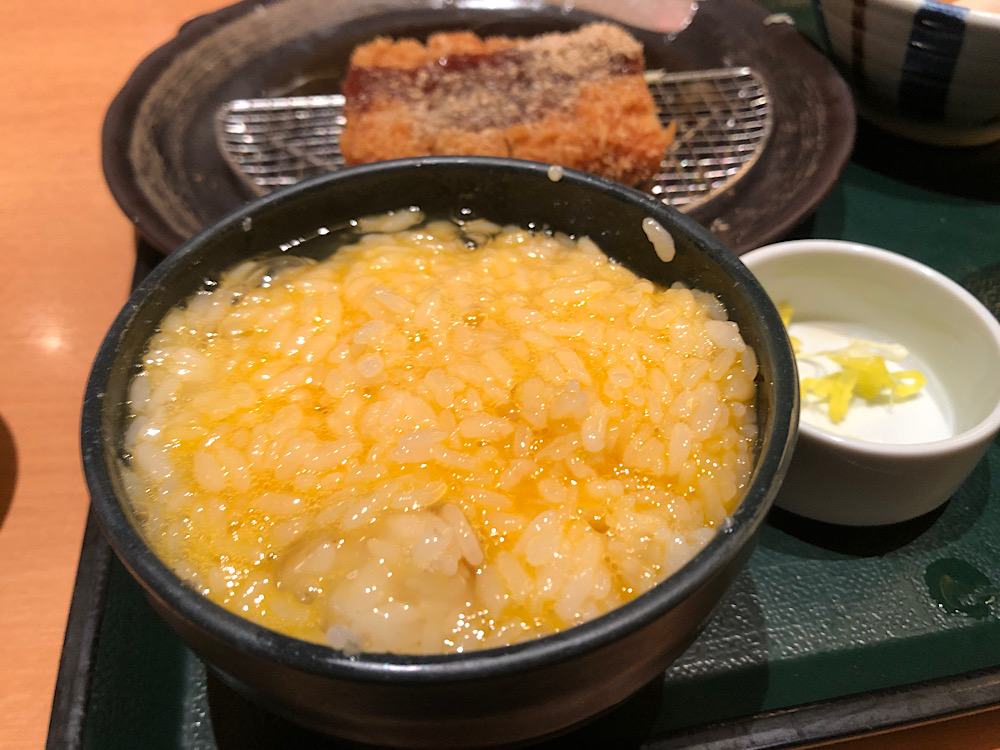 夕飯はトンカツと卵かけご飯食べ放題!