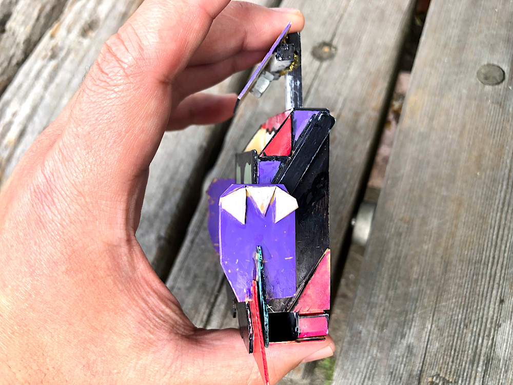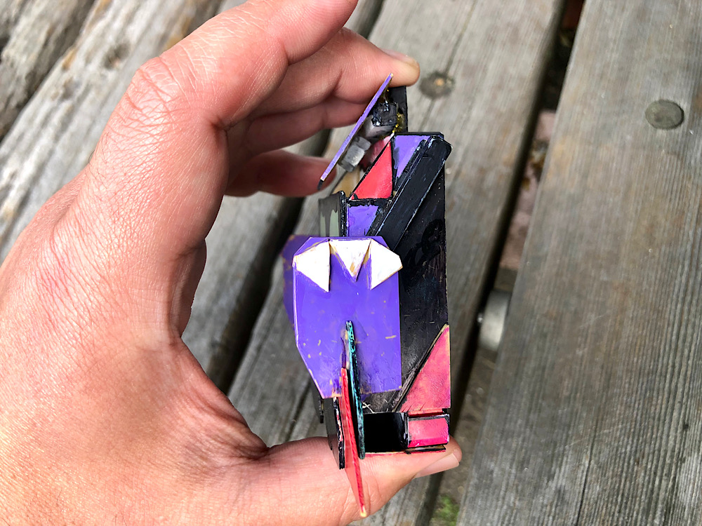 プラ板にスリットを切り出す事でそれをジョイントにして差し替え変形が出来ると言う初心者らしからぬ素晴らしい機体を開発されたのですが