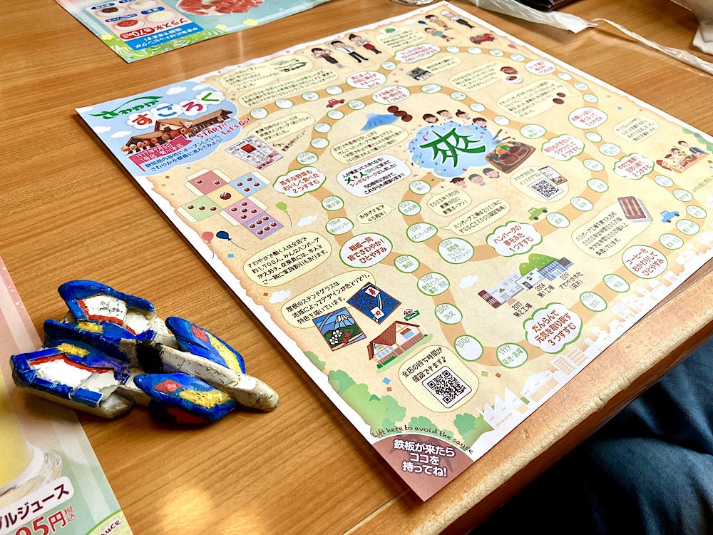 暇つぶしのための双六の紙は鉄板から飛び跳ねる肉汁からガードする役目もあったのか!