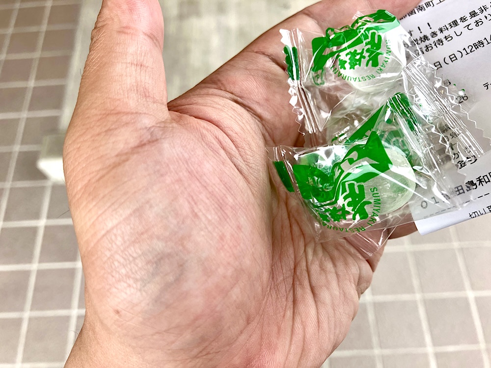食事後は会計でハッカ飴をもらいました