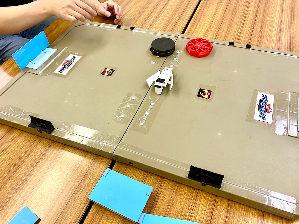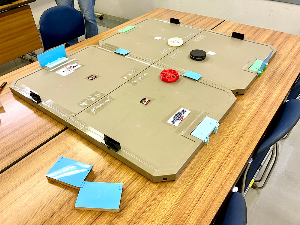 フィールドをセッティングしながら新型機の披露