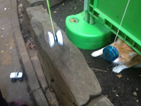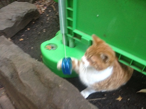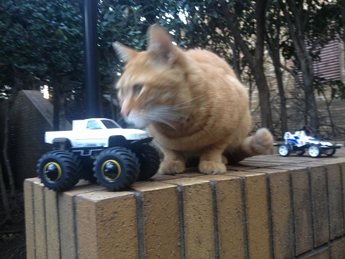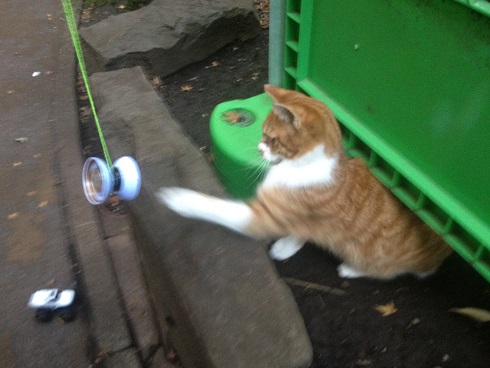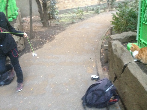 塀の上にマシンを置いていると、好奇心旺盛な猫がこちらへ近づいてきましたw