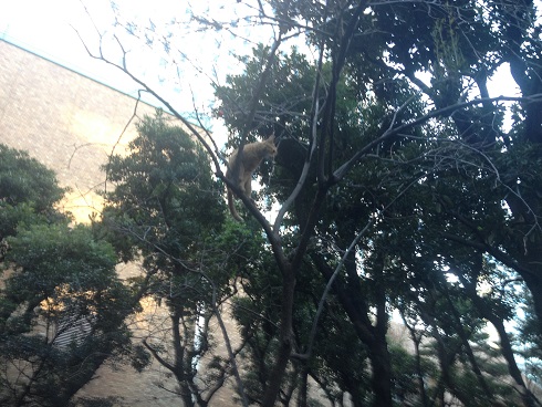 さぁ、飛び降りて来い!!と腕を出してやったものの、猫は無視して恐る恐る自分から降りていきました