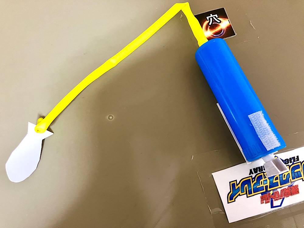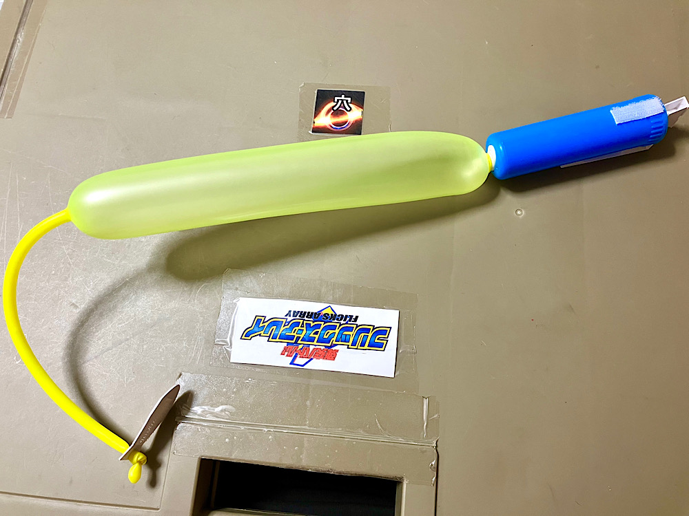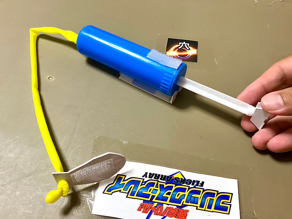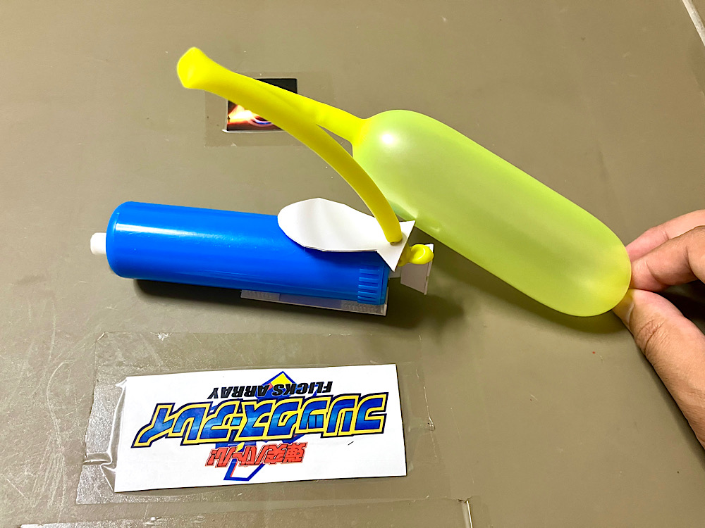 アンカーと本体を接続させた状態で風船の空気を抜く事で、空気の推進力がシュートをサポートする!かもしれない