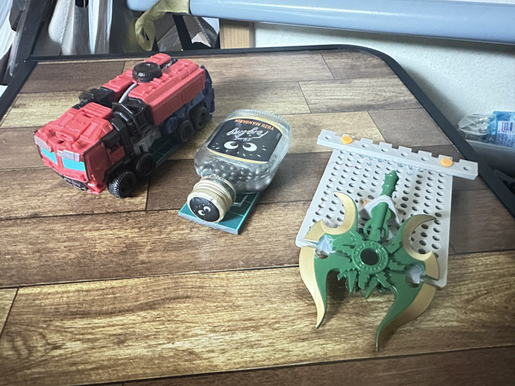 斧は、適当なお土産小物と工作プレートを組み合わせた手軽ながらもそれなりのカッコ良さを持つ機体