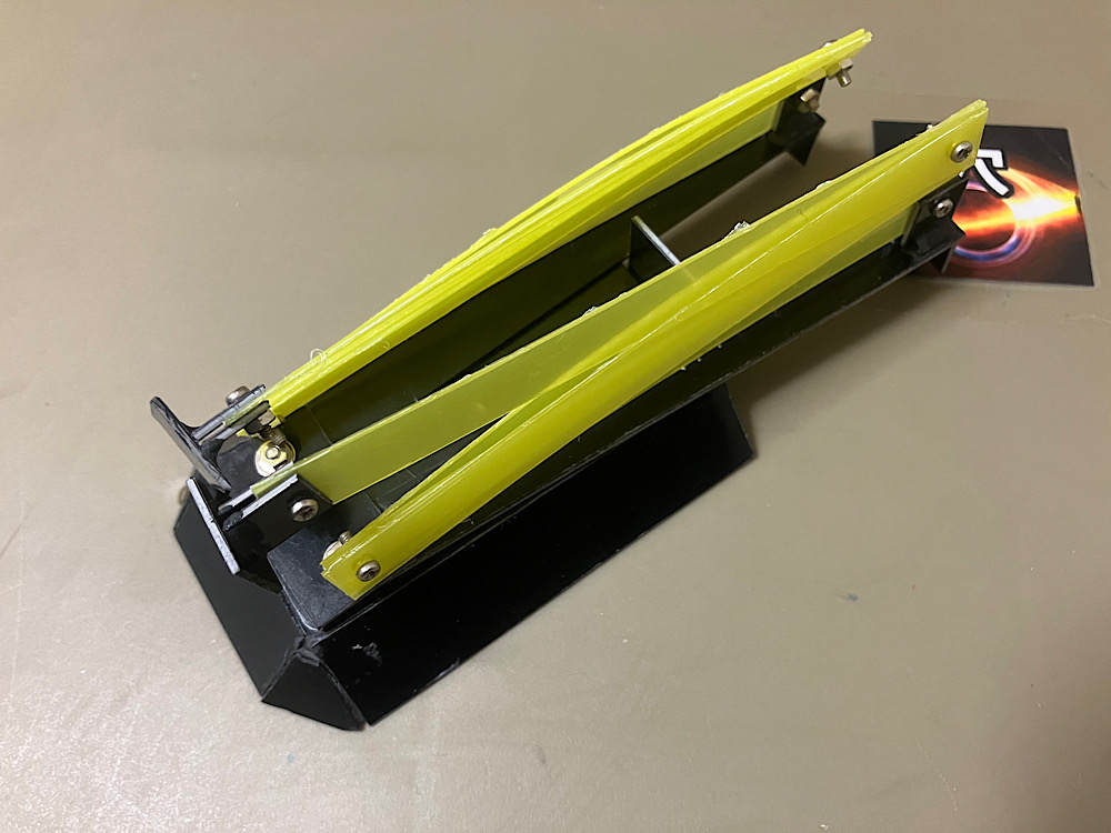高グリップ、そして受け流し形状の防御に特化した本体から数十センチにも伸びるアームが特徴的