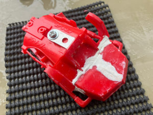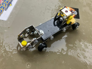 えんぺらさんの機体は、アームにつけたタイヤのおかげで雨で濡れたフィールドをものともしない機動力でアクティブシュートで先手を取りやすく
