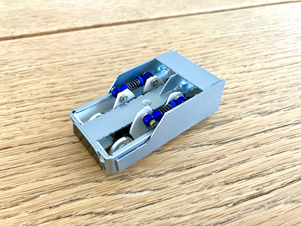 ミニッツのサスパーツを組み込み、しっかりとサスペンションが機能しています