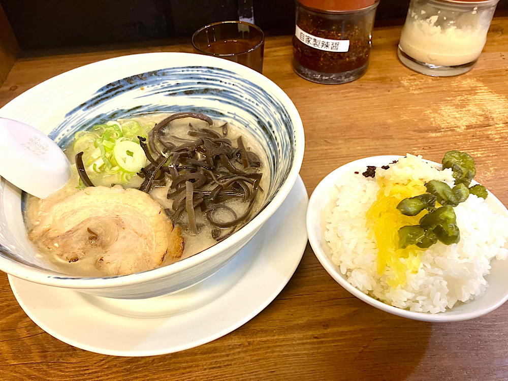 博多ラーメンでライス食べるの不思議な気分
