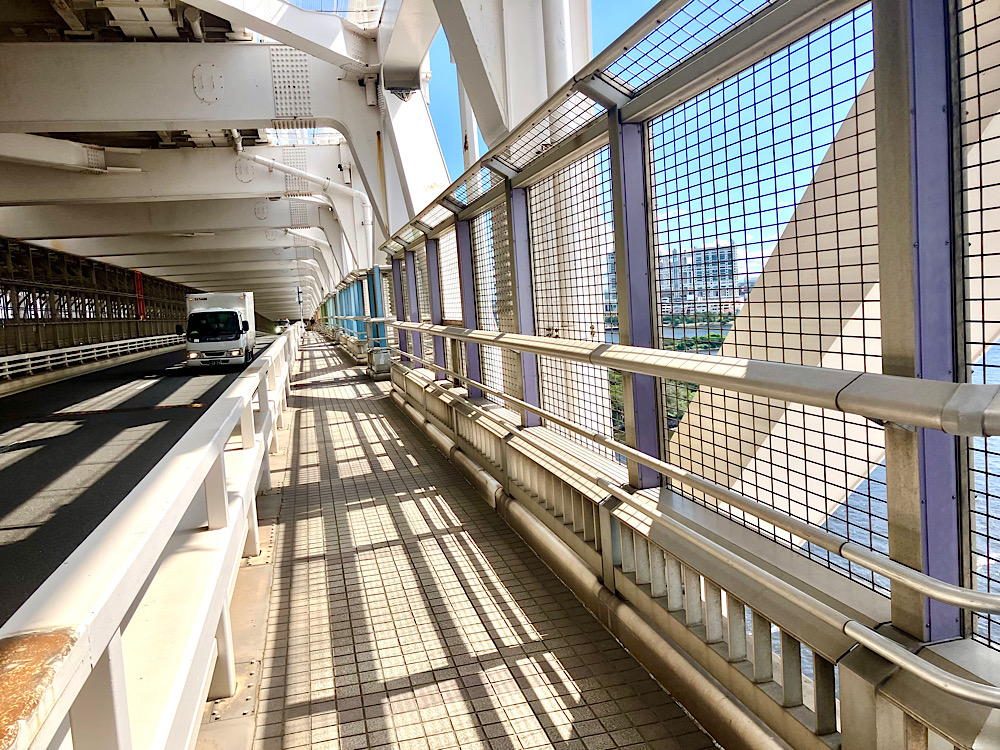 レインボーブリッジの遊歩道からお台場を目指します