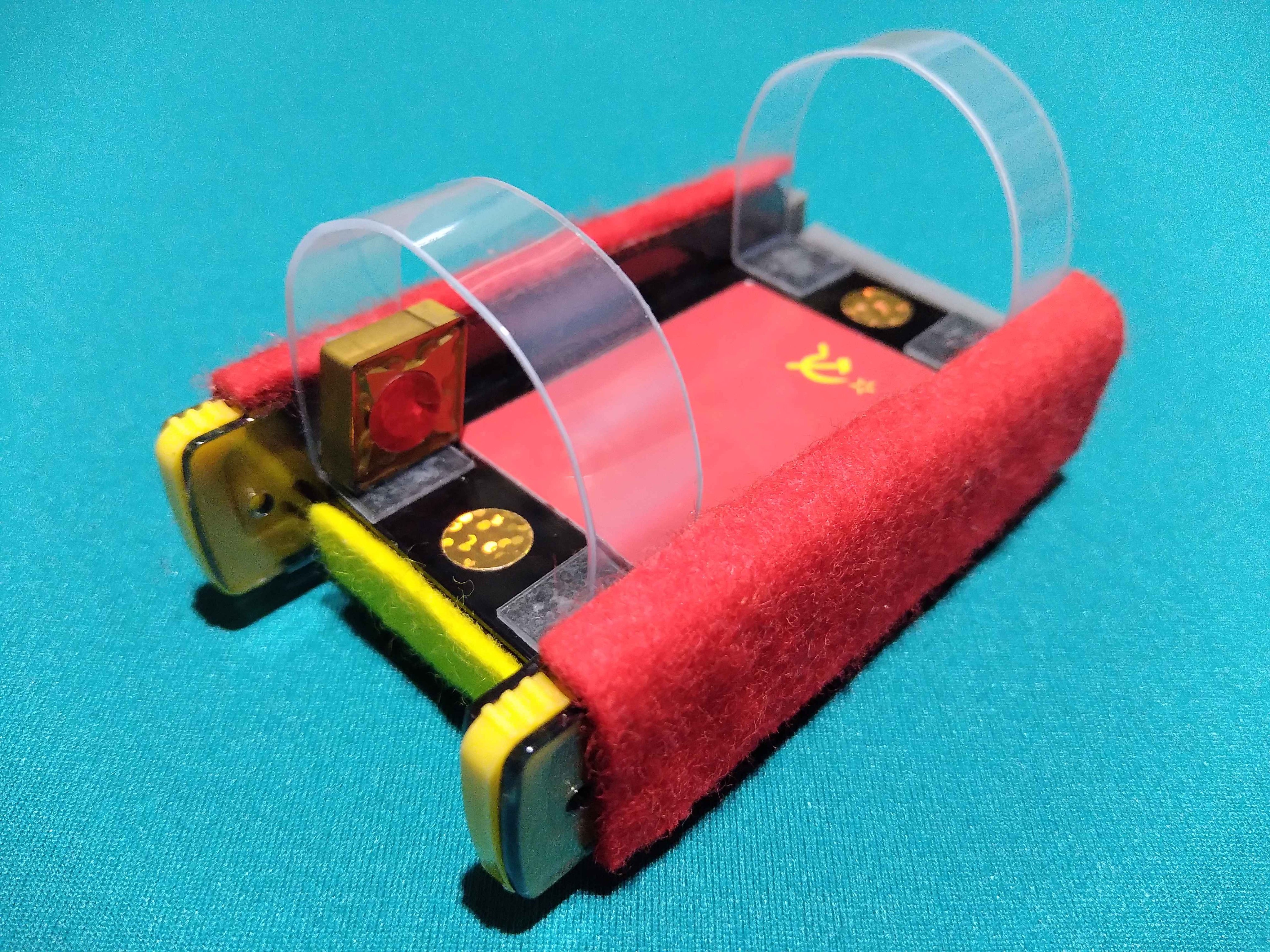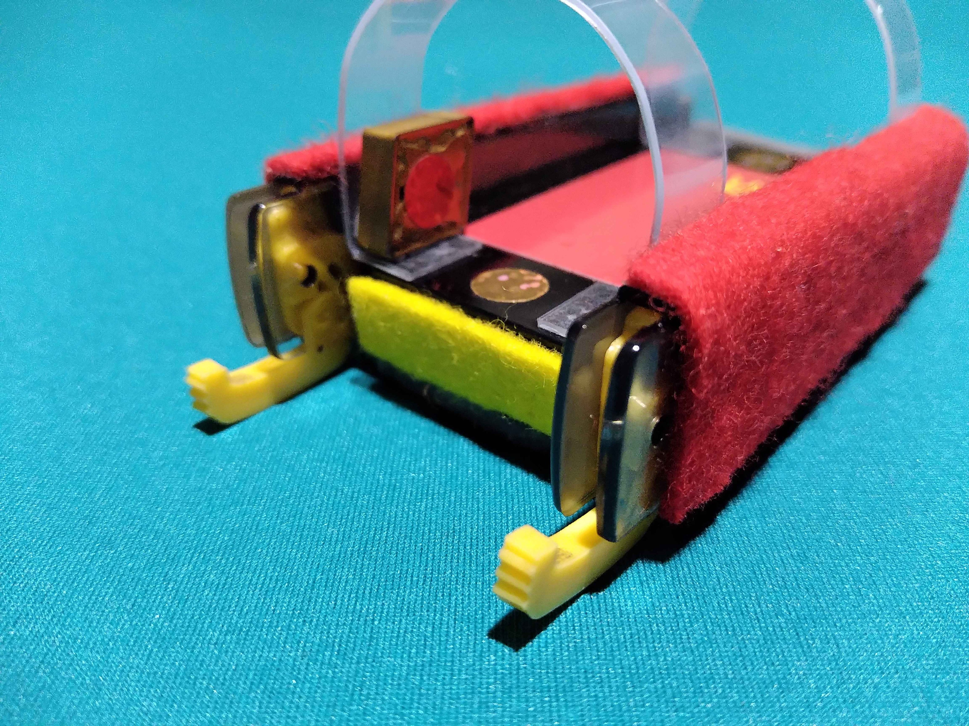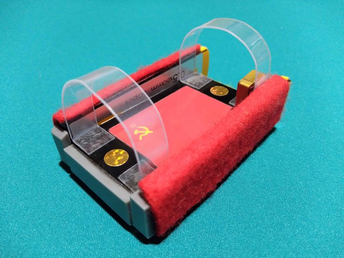 たたみねさん製フリックス「ツインミューブル レッドエディション」 コメントを残す Tweet Pocket へびのすねさんのツインミューブルをたたみねさんが独自のアレンジを加えて製作! 上部のアーチの素材をPET製に変更 両サイドのシャー芯ケースも違うバージョンにしている フロントもツラを揃えつつ、左に重心を寄せている リアのアームを可動させると、グリップが浮いて摩擦軽減し機動力が上がる シャーシは、オリジナルのものとほぼ同じギミックだが フッ素やテフロンでより滑らかになっている!
