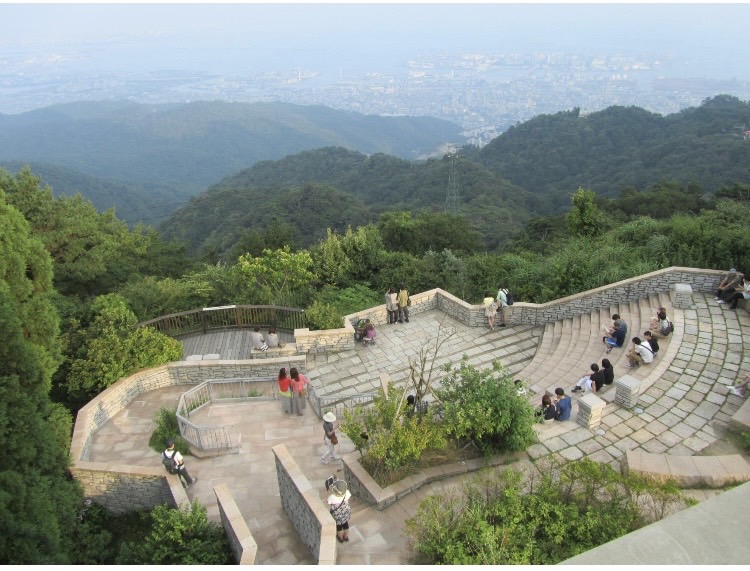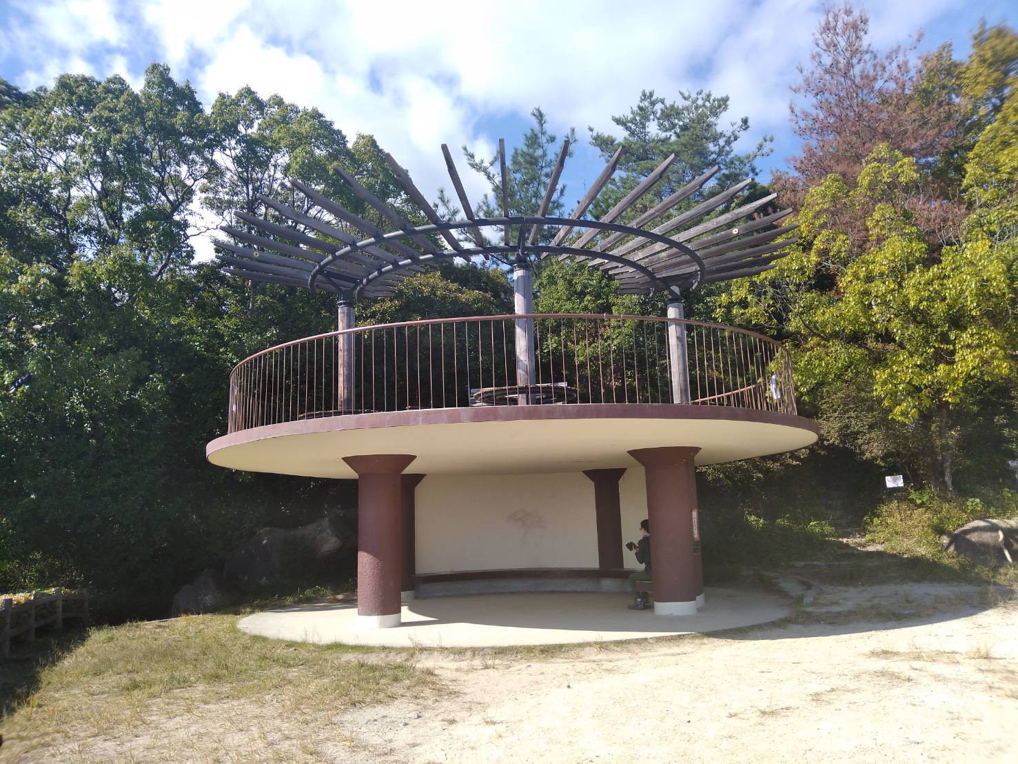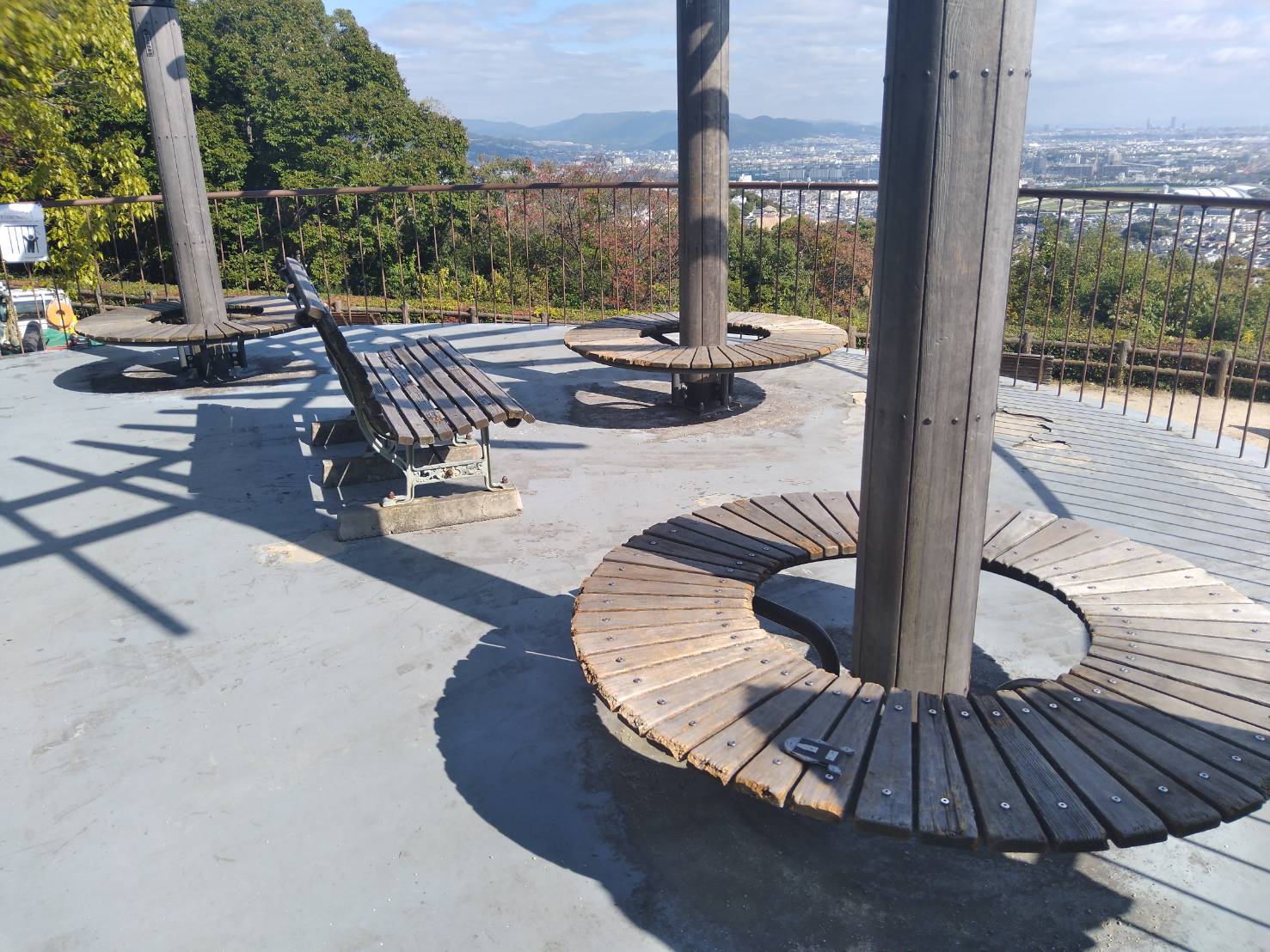 展望台っぽい場所には円形のベンチが