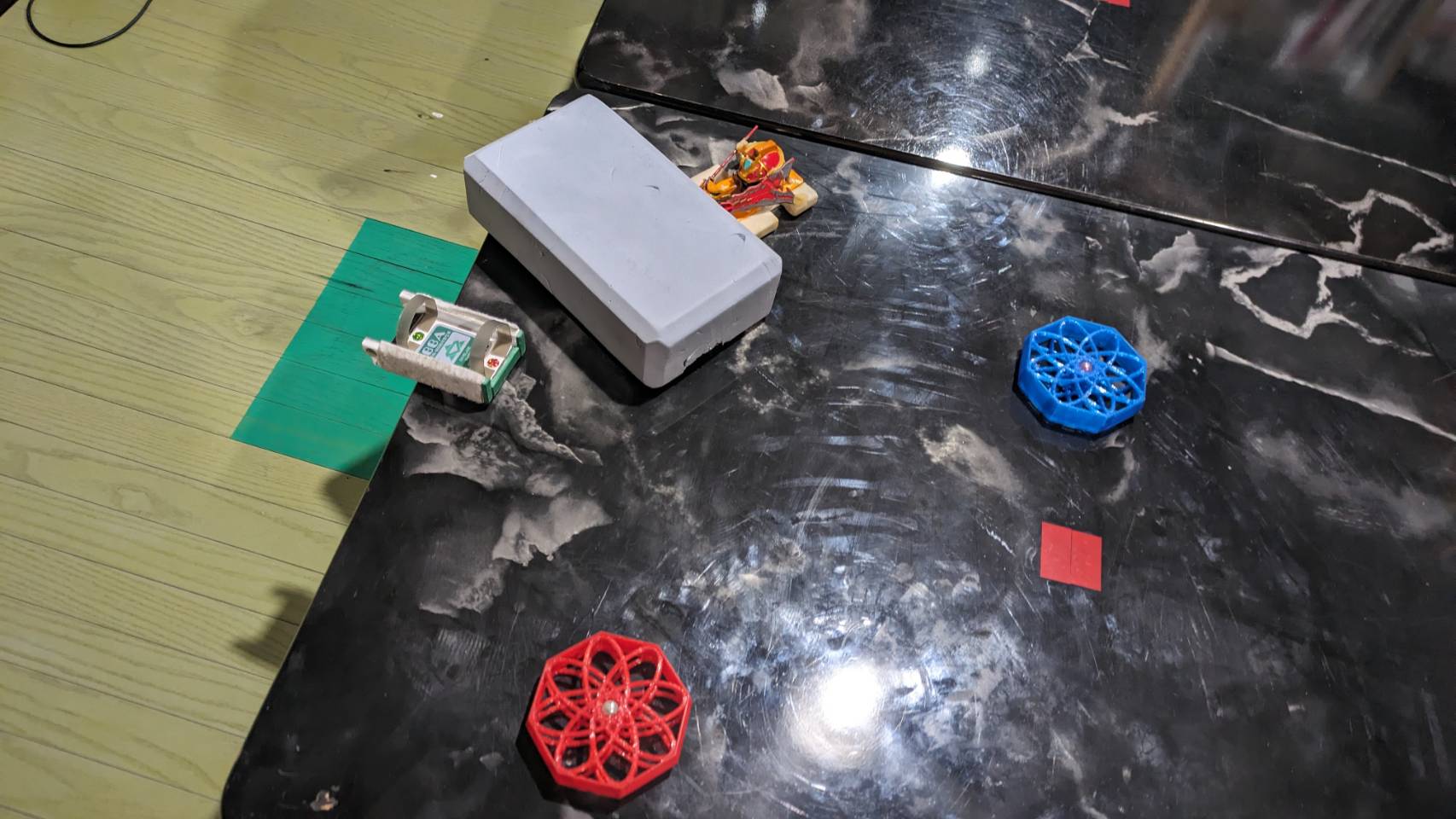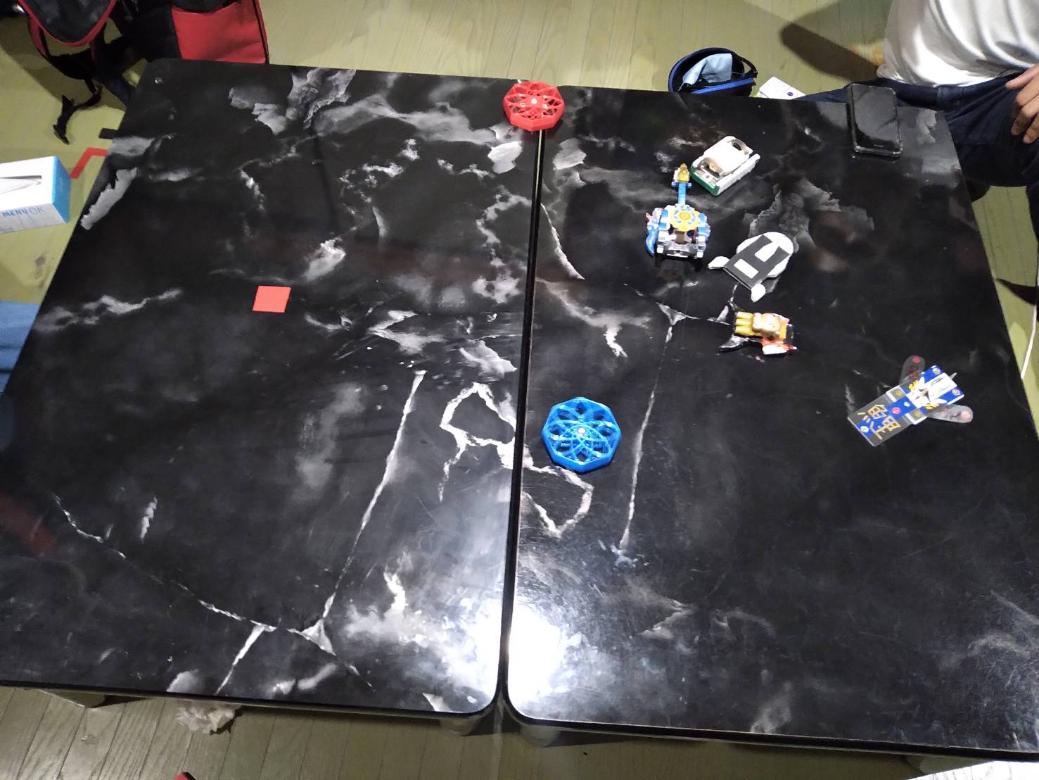 滑りやすい机と謎のスポンジ障害物を使ってのバトルが楽しかったようです!