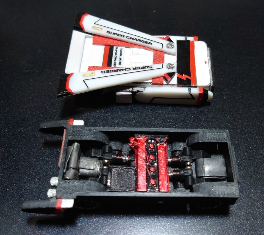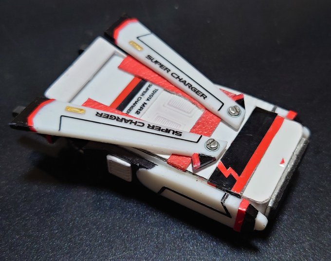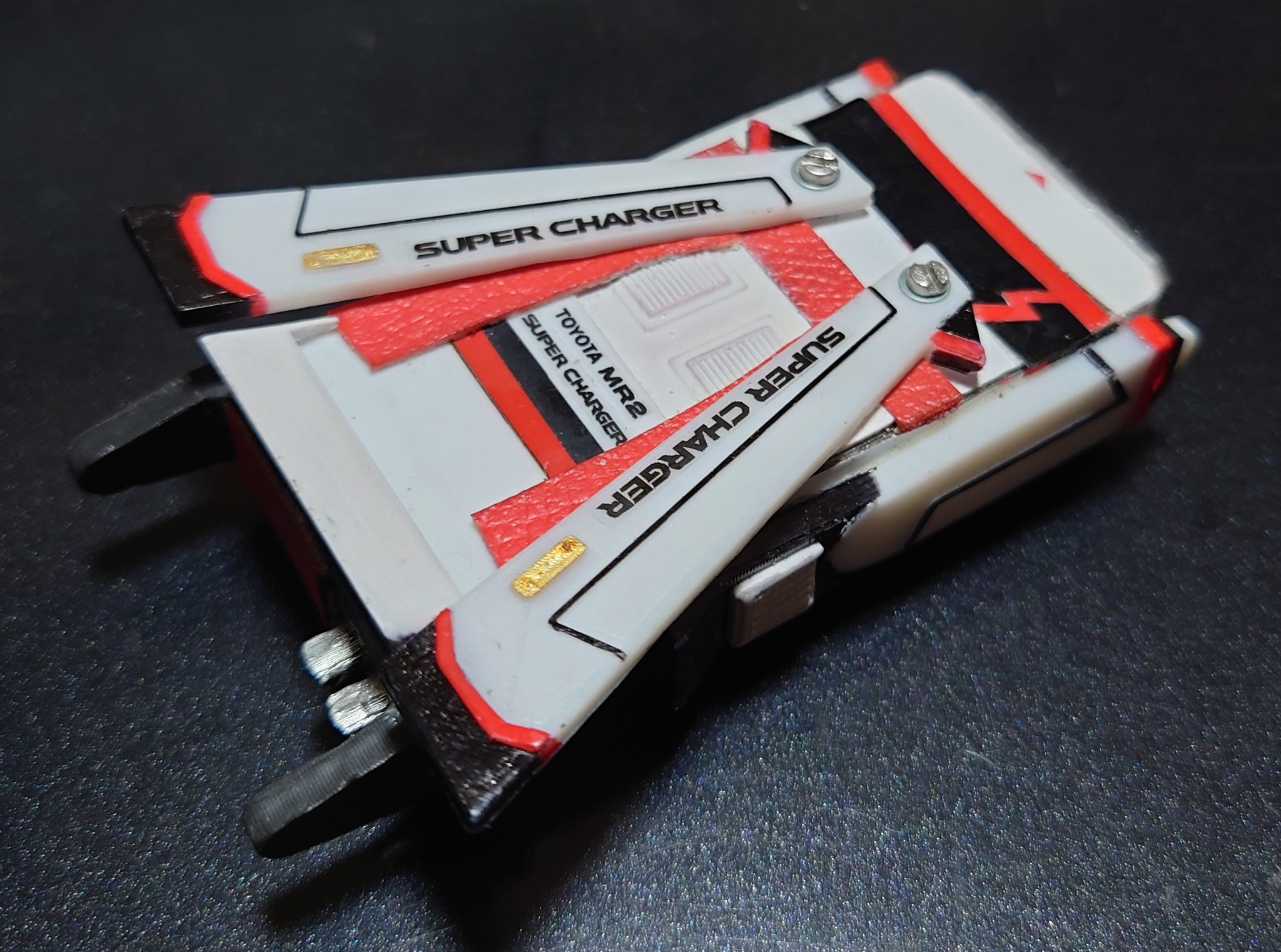 KAZUさん製フリックス「RABBIT PROTO μ MR2 “MERU”」 コメントを残す Tweet Pocket KAZUさんの愛車、AW11型 MR2の擬獣化キャラをフリックスに落とし込んだ機体 自動車がモチーフなのでタイヤは四輪で、独立懸架サスペンションユニットによるしなやかな足回りにより路面の追従性、さらに機体が衝突した時の姿勢制御を可能にしている 赤いパーツは実車のエンジンをウエイト&飾りとして搭載! こう言うロマン大事