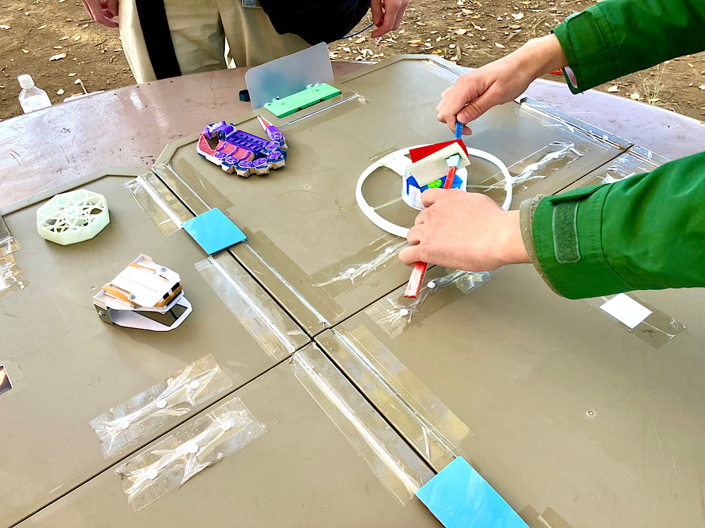 バリケードを持って場内で構えている手に敵機やマインが触れてしまった場合はペナルティを受けてしまいます(今回は全フリップアウトと同じ扱いに設定)