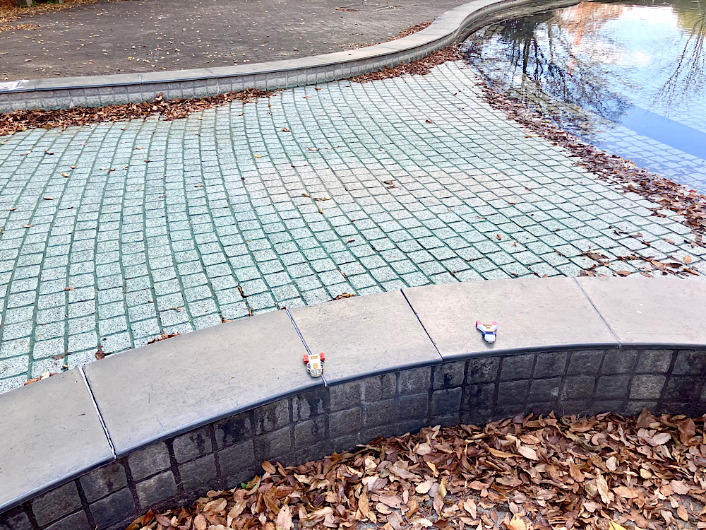 思わぬ段差に苦戦!そして、運悪く噴水側に落ちると水が汚いので洗車タイムになりますw