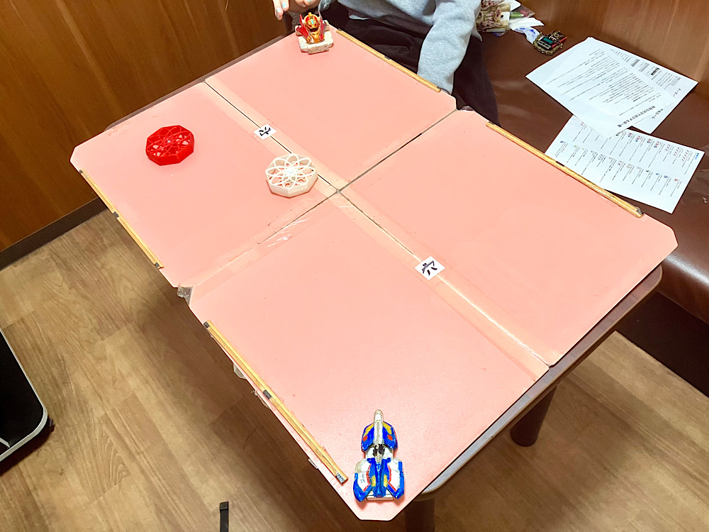 そこまで広い場所ではないので、昔ごろくーに渡した旧フィールドを机の上に広げてバトル