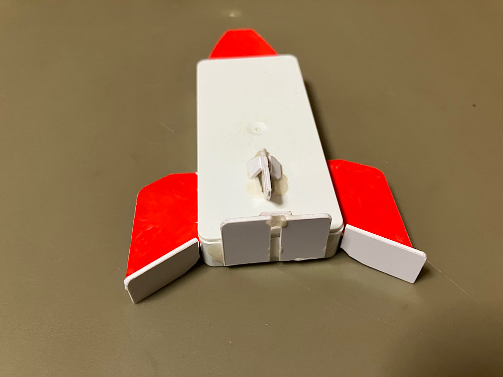 ボディ上部にある穴に紐を結い付け、フリッカーの指と繋げる事で機体をシュートしても紐を引けば即回収する事が出来る!