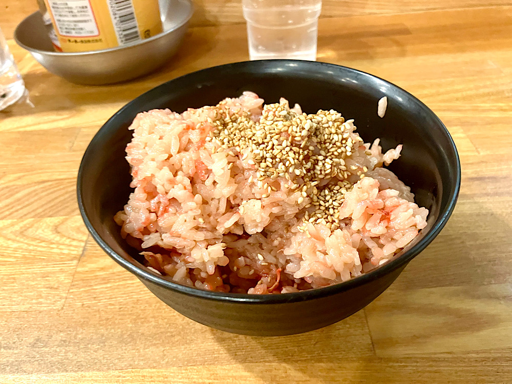 更に、ライスは紅生姜、ゴマ油、かやく入りの味付きご飯
