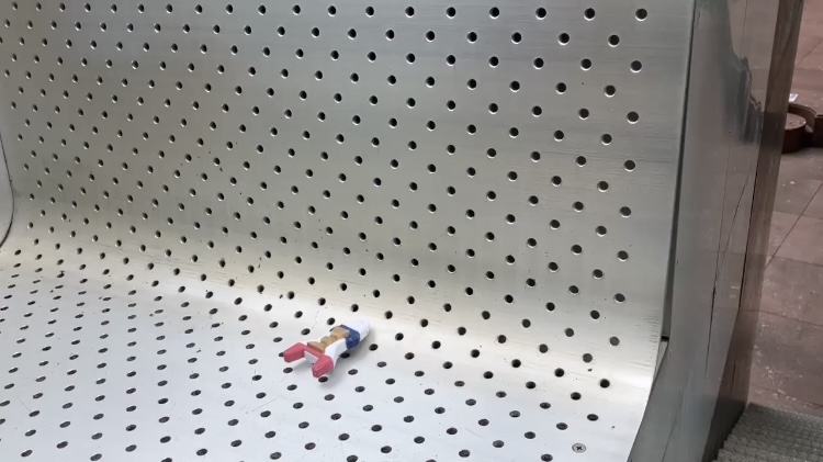 ここには、角が曲面になっている金属ベンチがあったので、タイヤ装備フリックスでシュート