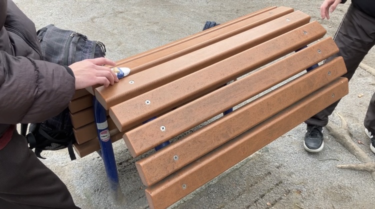 ベンチの溝をレールにして走破