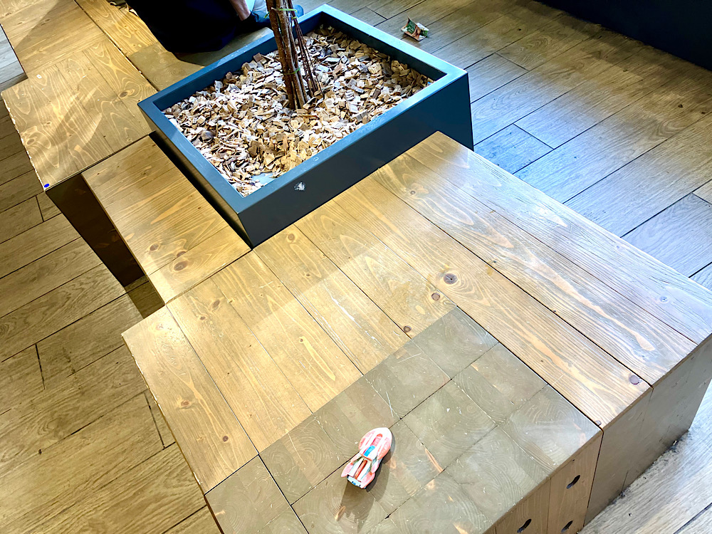 床は綺麗だし、美術品あるし、オシャレなベンチあるし