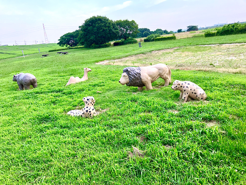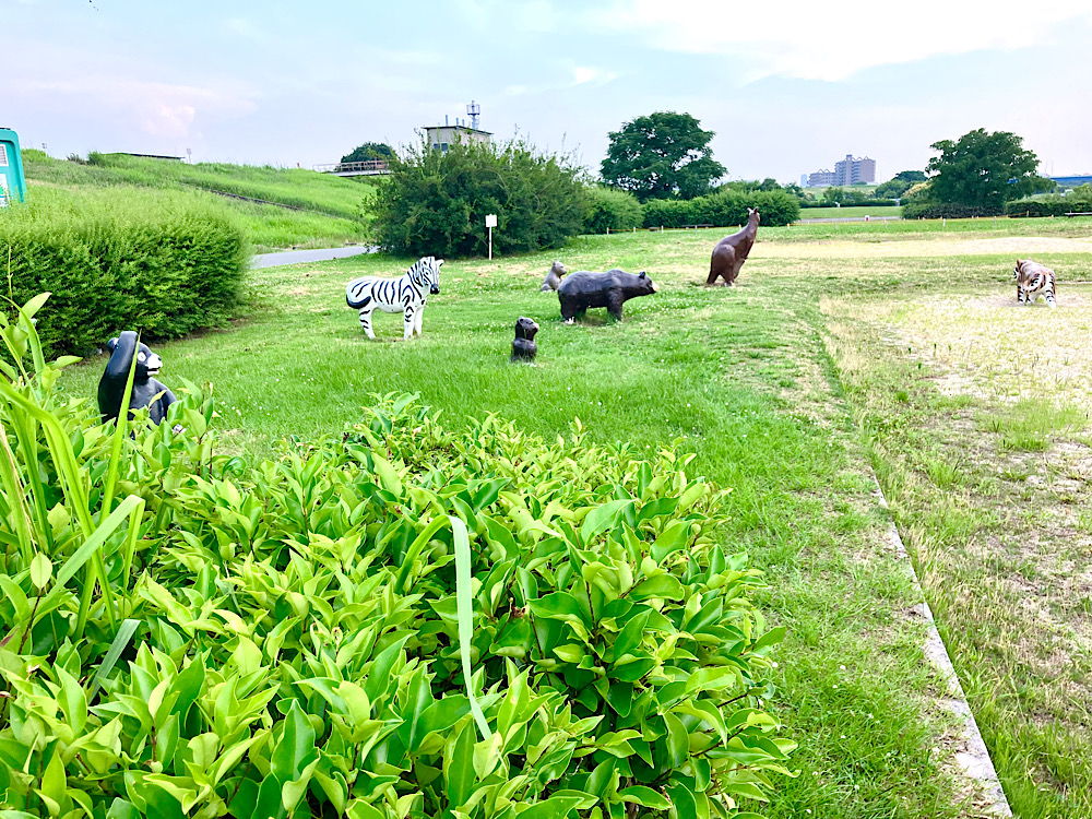 動物の像がたくさん置いてるエリア