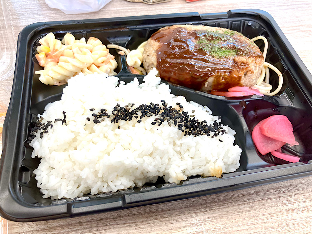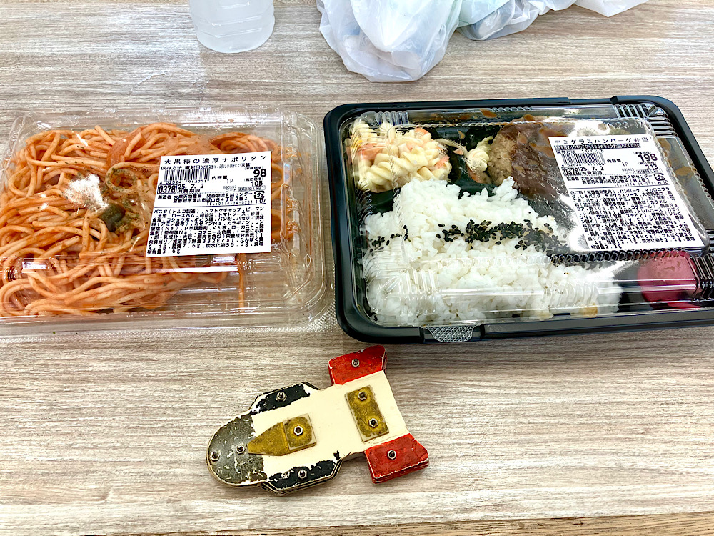 駅構内には休憩スペースがあるので、そこでラ・ムーで買ったお弁当で昼食タイム