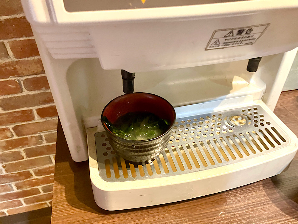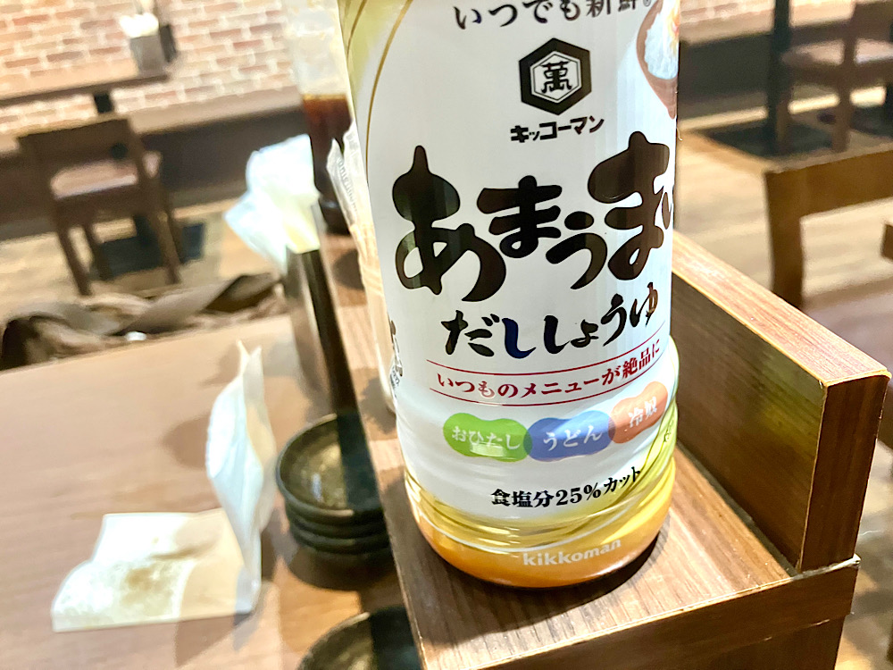 机にはキッコーマンの出汁醤油があり、これがライスとよく合う!