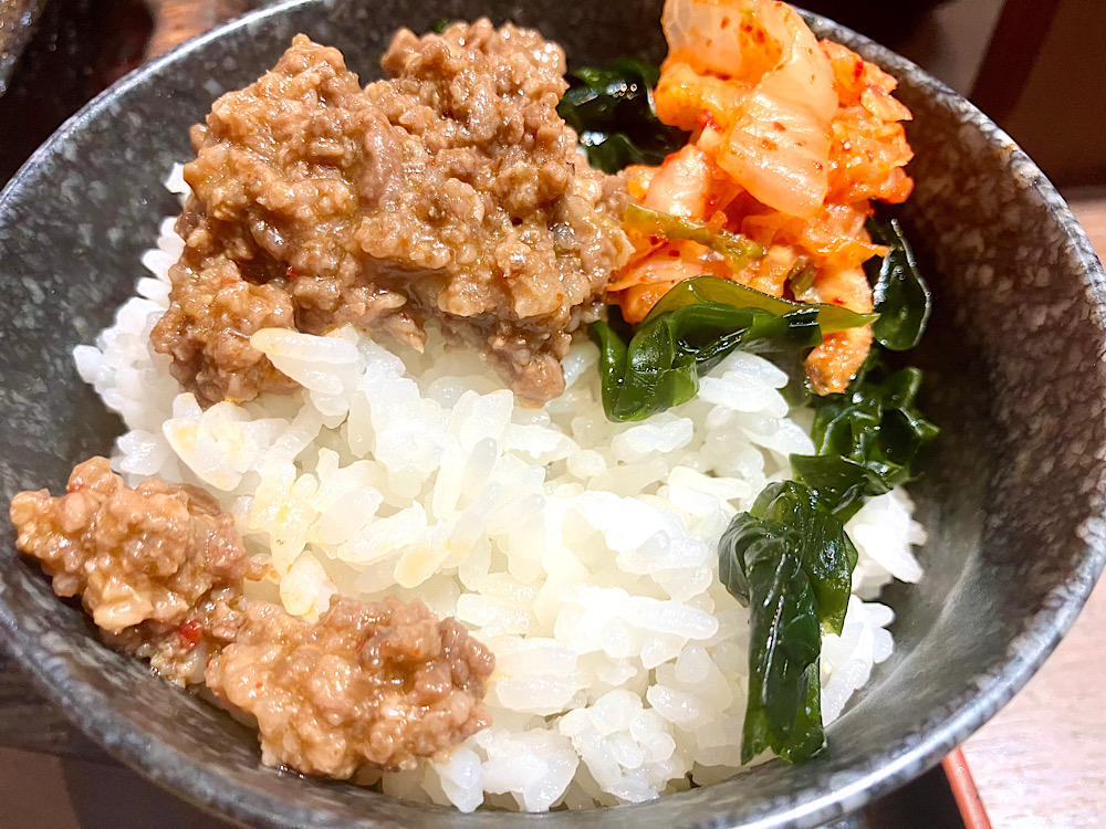 牛しぐれ、キムチ、ナムルを乗せた丼物として十分一品分の代金をとってもバチが当たらないのに
