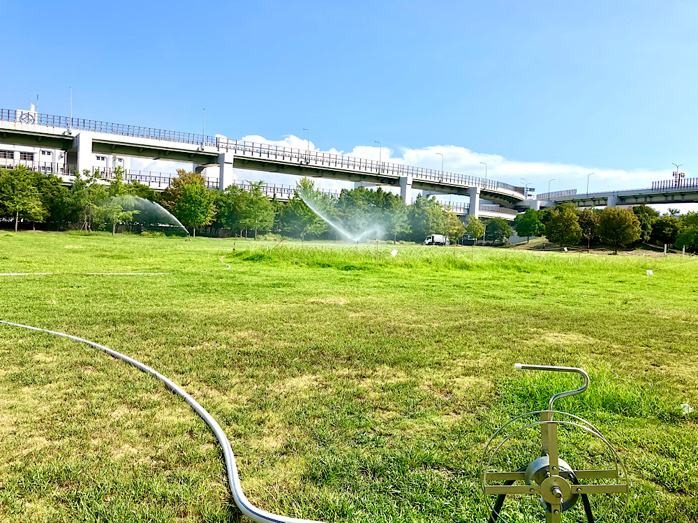 広い芝生の周りに走り易そうな路面があるので、ウォーミングアップとして一周する事に
