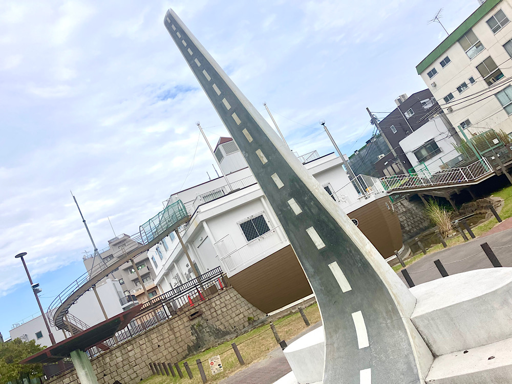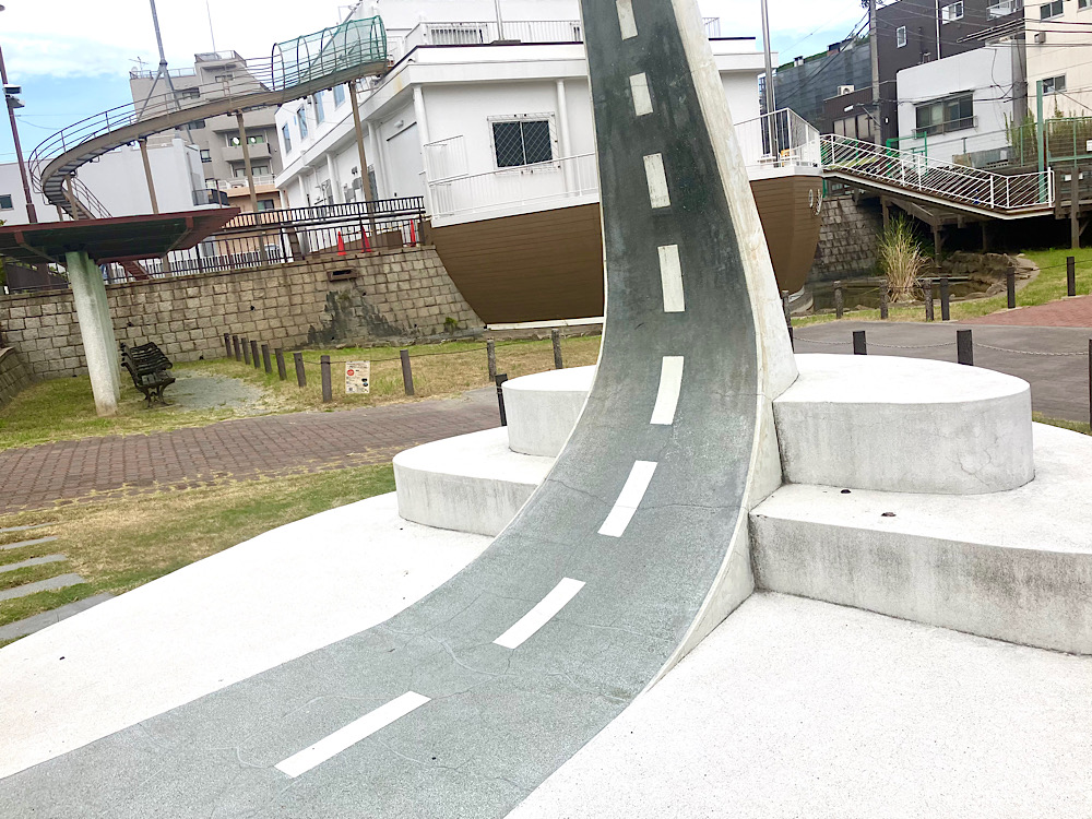 まるでカタパルトのように、バンクから垂直に伸びている道路のようなオブジェクト……!?